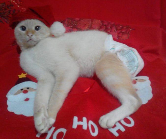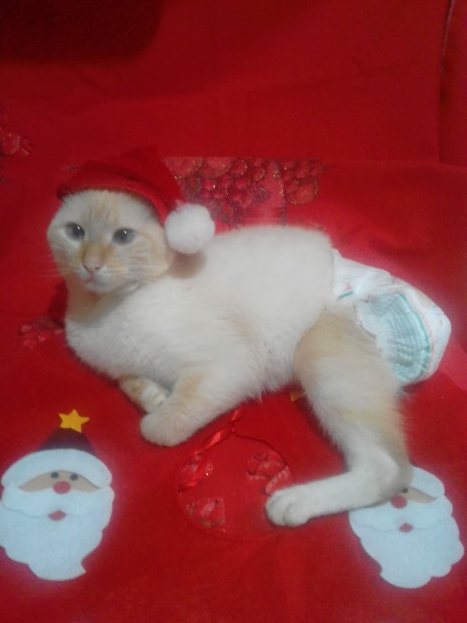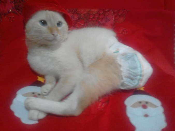 A fralda precisava e precisa ficar fixa sem a perna e a cauda para segurar, o bumbum e a uretrostomia da barriguinha precisavam ser lavados com o mínimo de umidade nos pontos perto do quadril e ainda hoje, dois meses e dezoito dias depois, notamos pequena quantidade de sangue no ânus e nas fraldas em algumas trocas, possivelmente pela ação mecânica, não se sabe ao certo, e que não conseguimos evitar com medicamentos ou mesmo com adaptações ou mudanças de tamanhos, marcas ou modelos de fraldas.